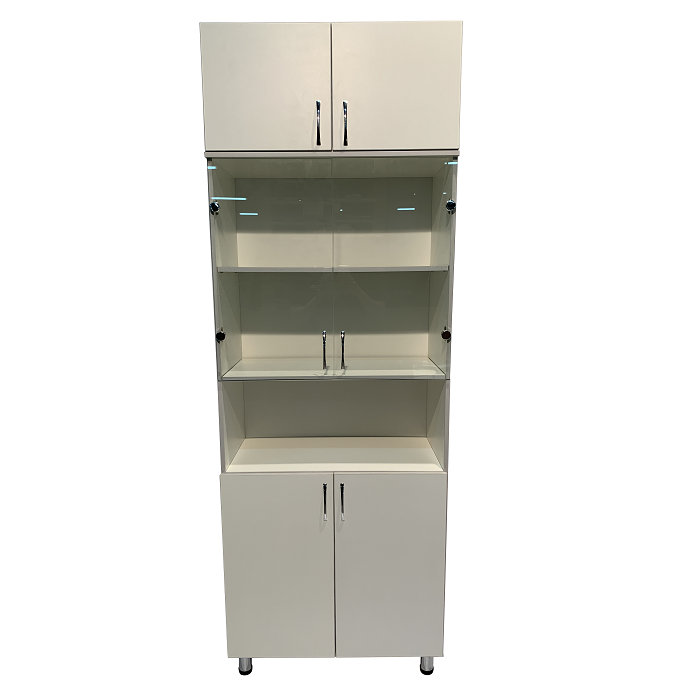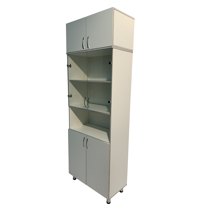 Шкаф MD ШМ 14.46 оснащен полками, дверцами и регулируемыми по высоте ножками, что делает его удобным и легким в использовании. Отличительной чертой этой модели является использование стеклянных дверей для средней части шкафа, что придает ему изысканный и современный вид.