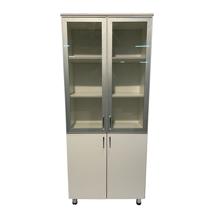 Этот шкаф обладает как вместительностью, так и компактностью, что позволяет эффективно использовать пространство помещения. Оснащенный полками, стеклянными дверцами в алюминиевых профилях и регулируемыми по высоте ножками, он обеспечивает удобство хранения и легкий доступ к документам.