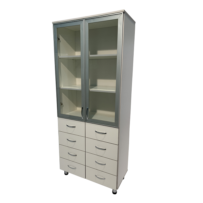 Медицинский шкаф MD ШМ 14.63 - это уникальное решение для комфортного и организованного хранения медицинской документации в стенах медицинских учреждений. Этот шкаф оснащен всем необходимым для удобного использования: полками, выдвижными ящиками, стеклянной дверцей в алюминиевом профиле и регулируемыми по высоте ножками.