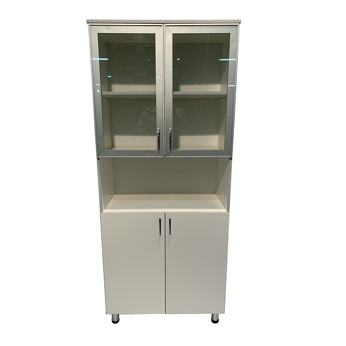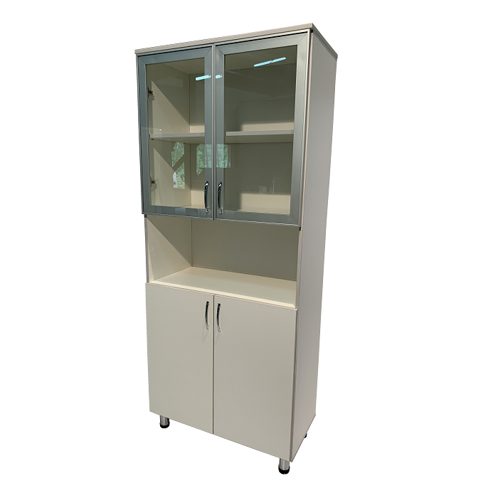 Наличие разделений внутри ниши позволяет легко структурировать медицинскую документацию и обеспечивает удобный доступ к ней. Изделие изготовлено из прочного ЛДСП толщиной 16 мм, что обеспечивает долгий срок службы шкафа и надежность его использования. А стеклянная верхняя дверца в алюминиевом профиле добавляет стильности и утонченности к общему дизайну.
