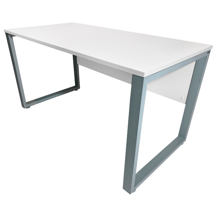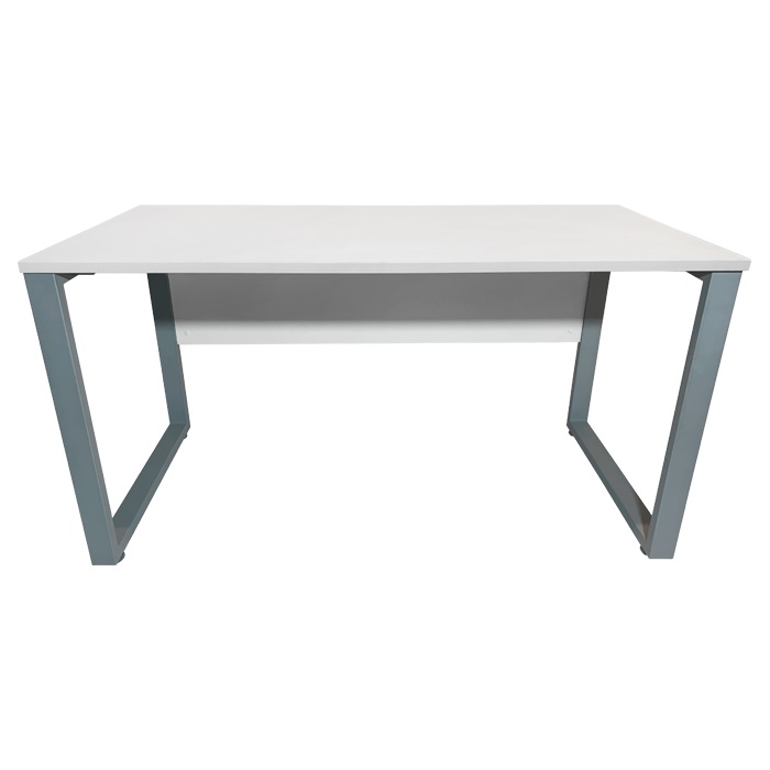 - Каркас стола изготовлен из качественного металла, покрытого порошковой краской серого цвета. Боковые стойки выполнены в виде двух замкнутых рамок, что обеспечивает прочность и надежность конструкции.