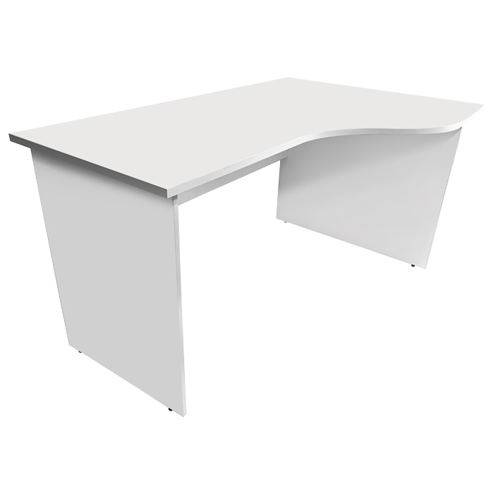 Столешница изготовлена с кромкой ПВХ 2 мм, а остальные части оборудованы кромкой ПВХ 0,4 мм для продолжительного срока службы. Расстояние от пола до верхней кромки рабочей поверхности составляет 750 мм, а до нижней кромки - 728 мм. Ширина между боковыми панелями составляет 1308 мм, а глубина столешницы переменна: 600 мм в левой части и 900 мм в правой, что обеспечивает удобство использования и организации рабочего пространства.