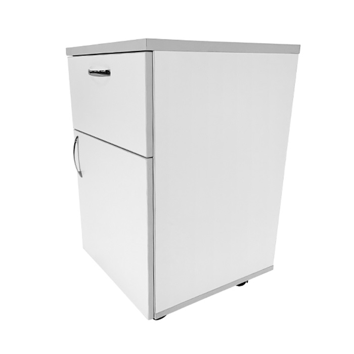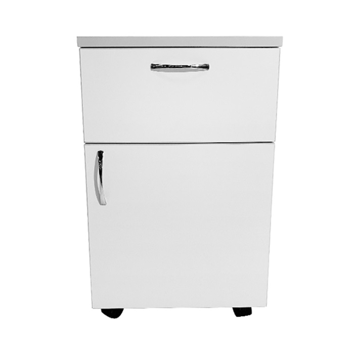 - Удобство использования: Тумба оснащена выдвижным ящиком и дверцей, что позволяет эффективно организовать внутреннее пространство для хранения различных предметов и приборов. Выдвижной ящик обеспечивает лёгкий доступ к часто используемым предметам, а дверца помогает скрыть менее нужные вещи, поддерживая порядок на рабочем месте.