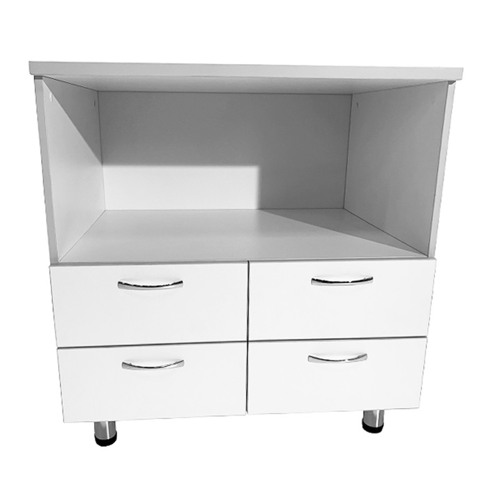 - Под столешницей тумбы находится просторная ниша, предназначенная для размещения даже крупной медицинской аппаратуры. Под нишей расположены четыре вместительных выдвижных ящика для удобного хранения различных медицинских принадлежностей.