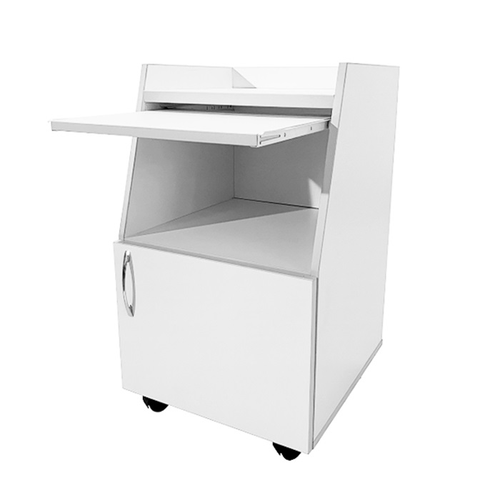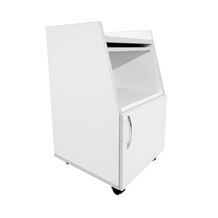 Тумба медицинская прикроватная MD TМ 13.07 с выдвижной столешницей прекрасно подойдет для использования в больничных палатах, предоставляя пациентам удобную возможность размещать личные вещи в ней. Этот продукт оснащен выдвижным столиком, под которым находится ниша, а также отделением с дверцей, что обеспечивает дополнительное пространство для хранения.